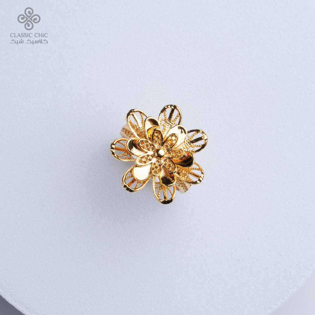 خاتم مميز بتفاصيل دقيقة مستوحاة من شكل الزهور، يضيف لمسة فخامة ناعمة لإطلالتك اليومية أو للمناسبات الخاصة.